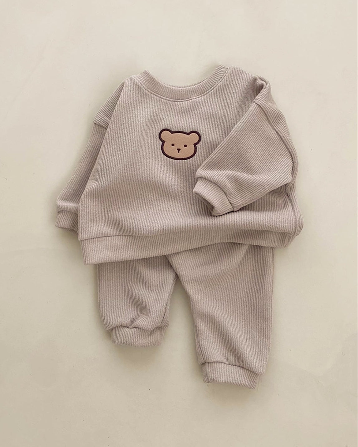 Solid Color Bear Baby Hoodie Pants 2pcs Set