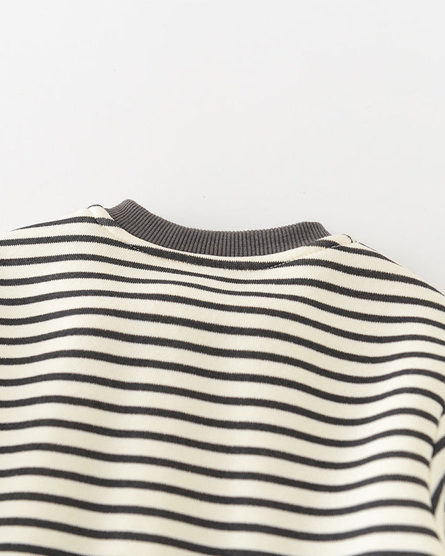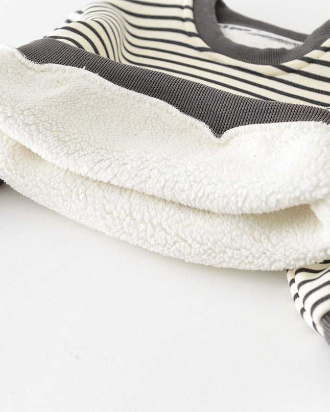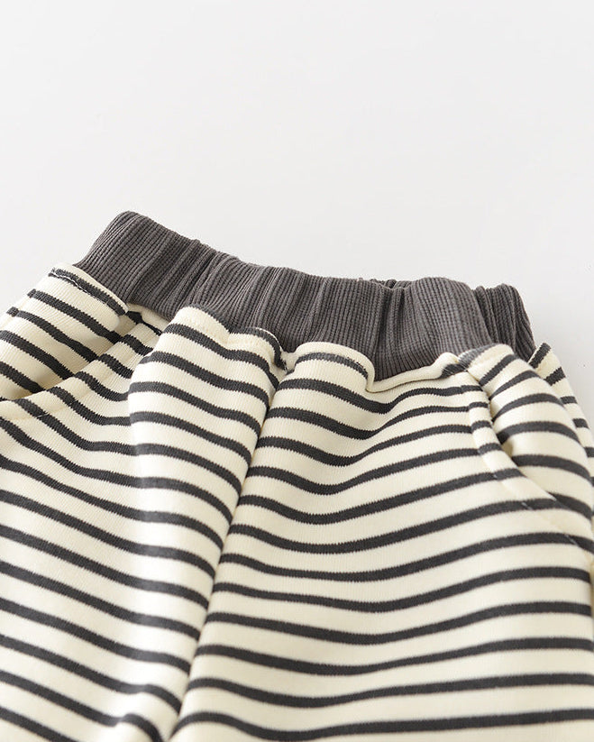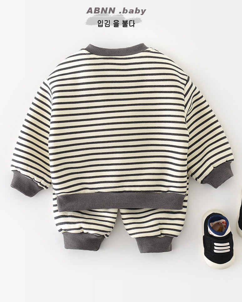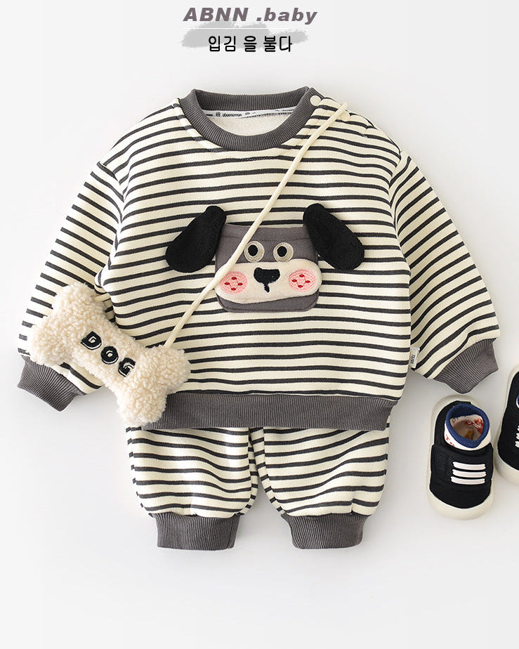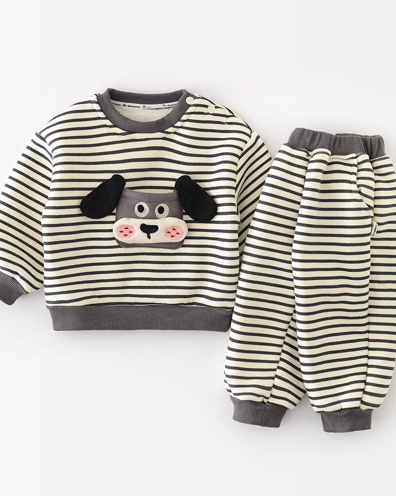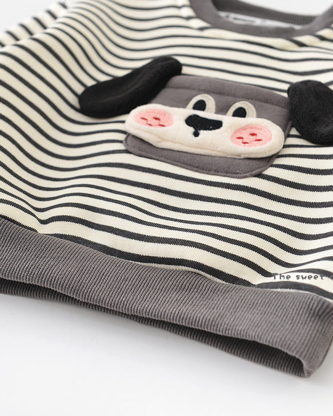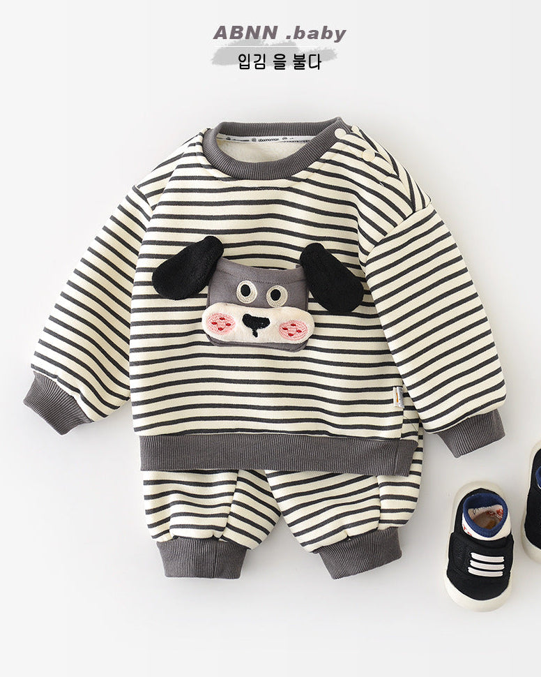 犬柄ストライプベビーパーカーパンツ2点セット
