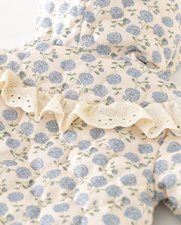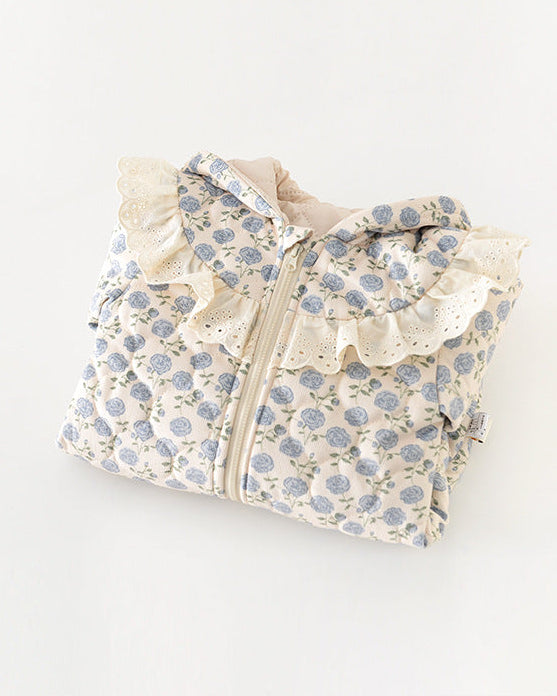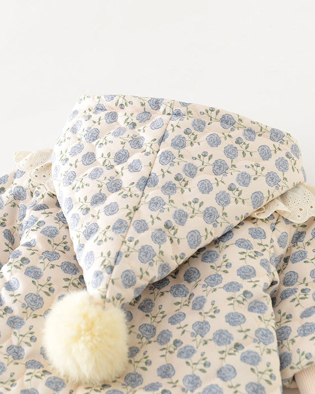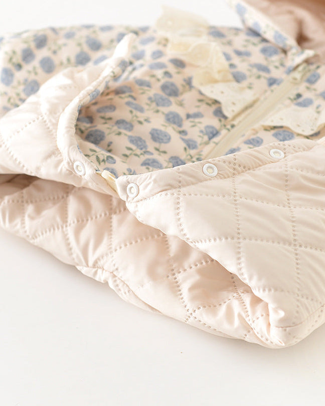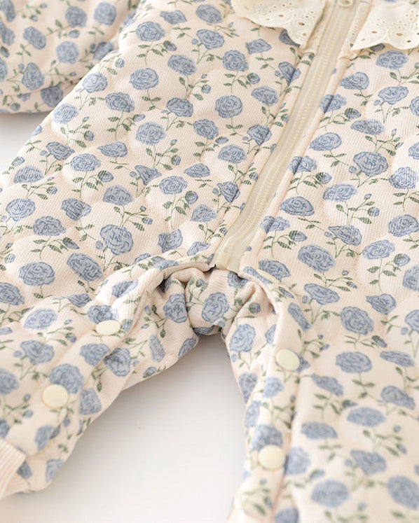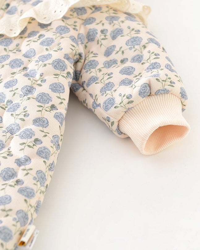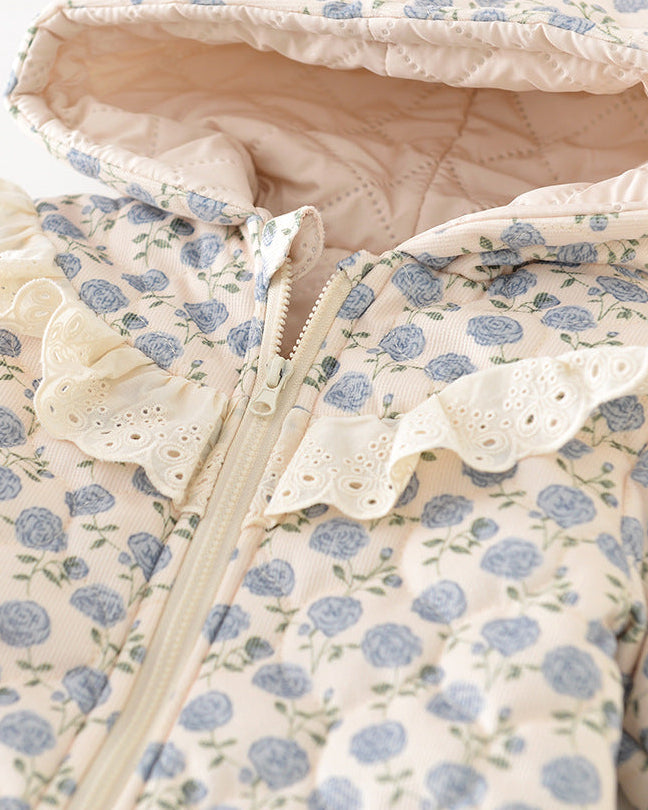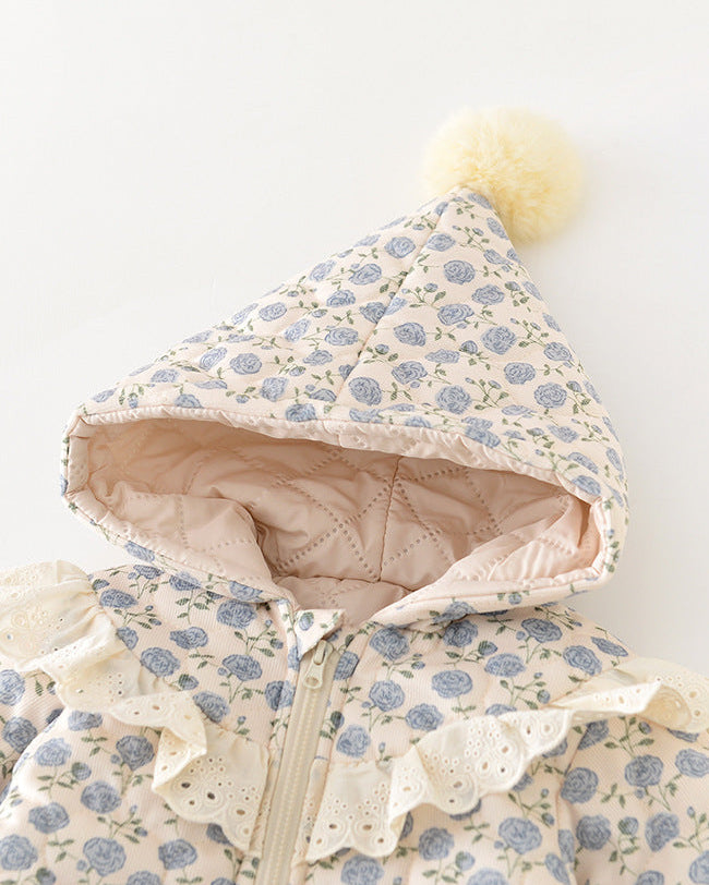 花柄レースのジップ付きベビーフード付きジャンプスーツ