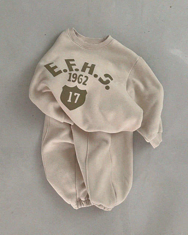 1962 Letter Fleece Warm Baby Hoodie Pants 2pcs Set