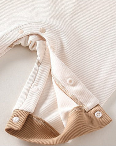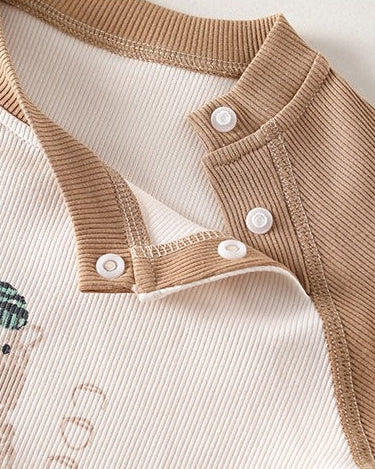 Bear Printed Color Block Long Sleeve Baby Jumpsuits