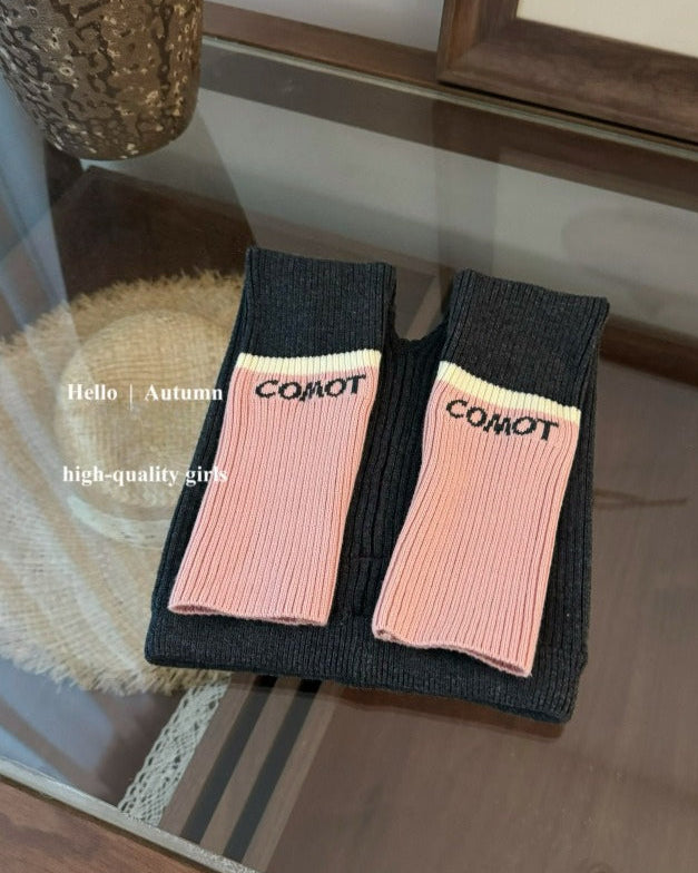 Knitted Ball Decor Color Block Girl Sweater Pants Set