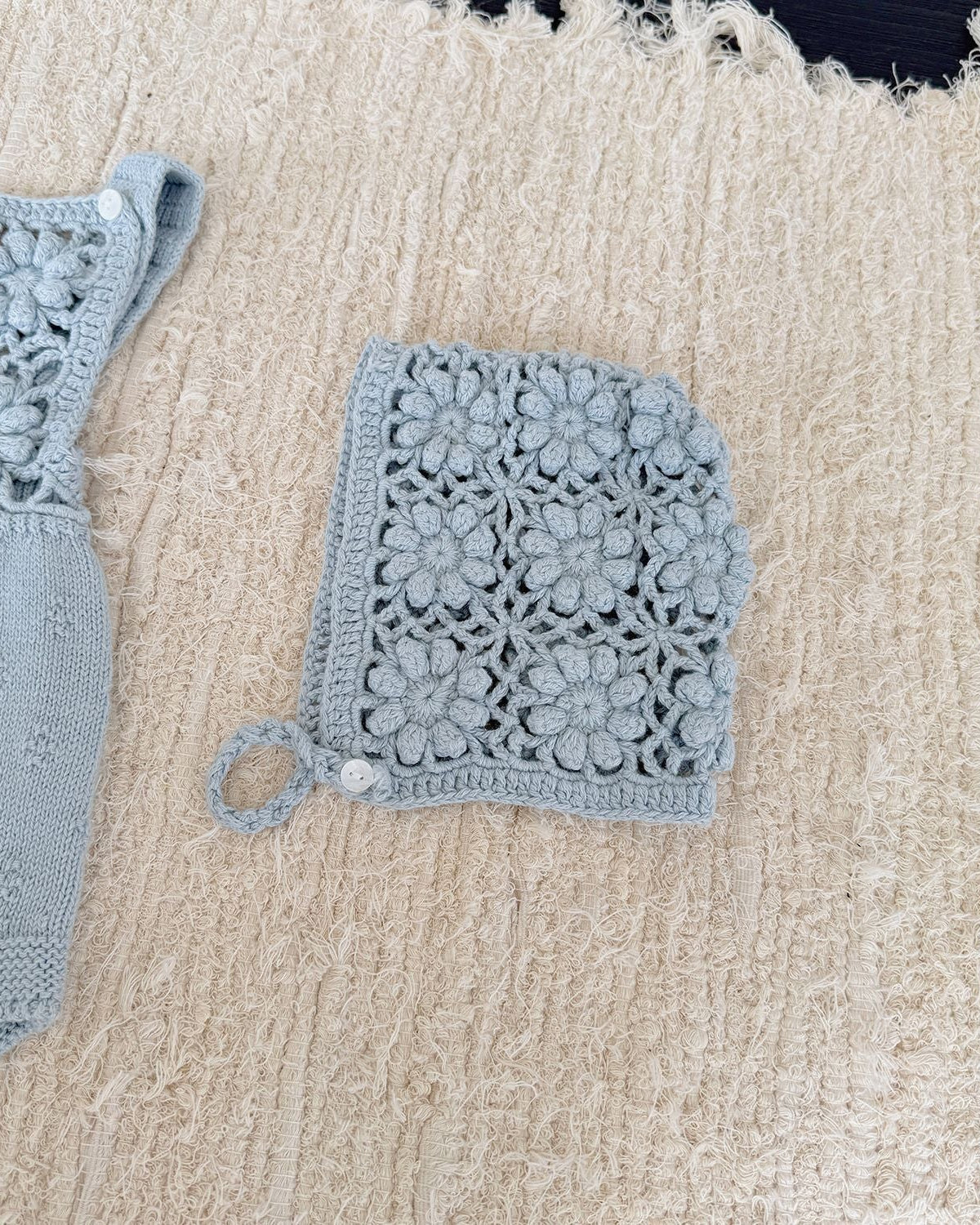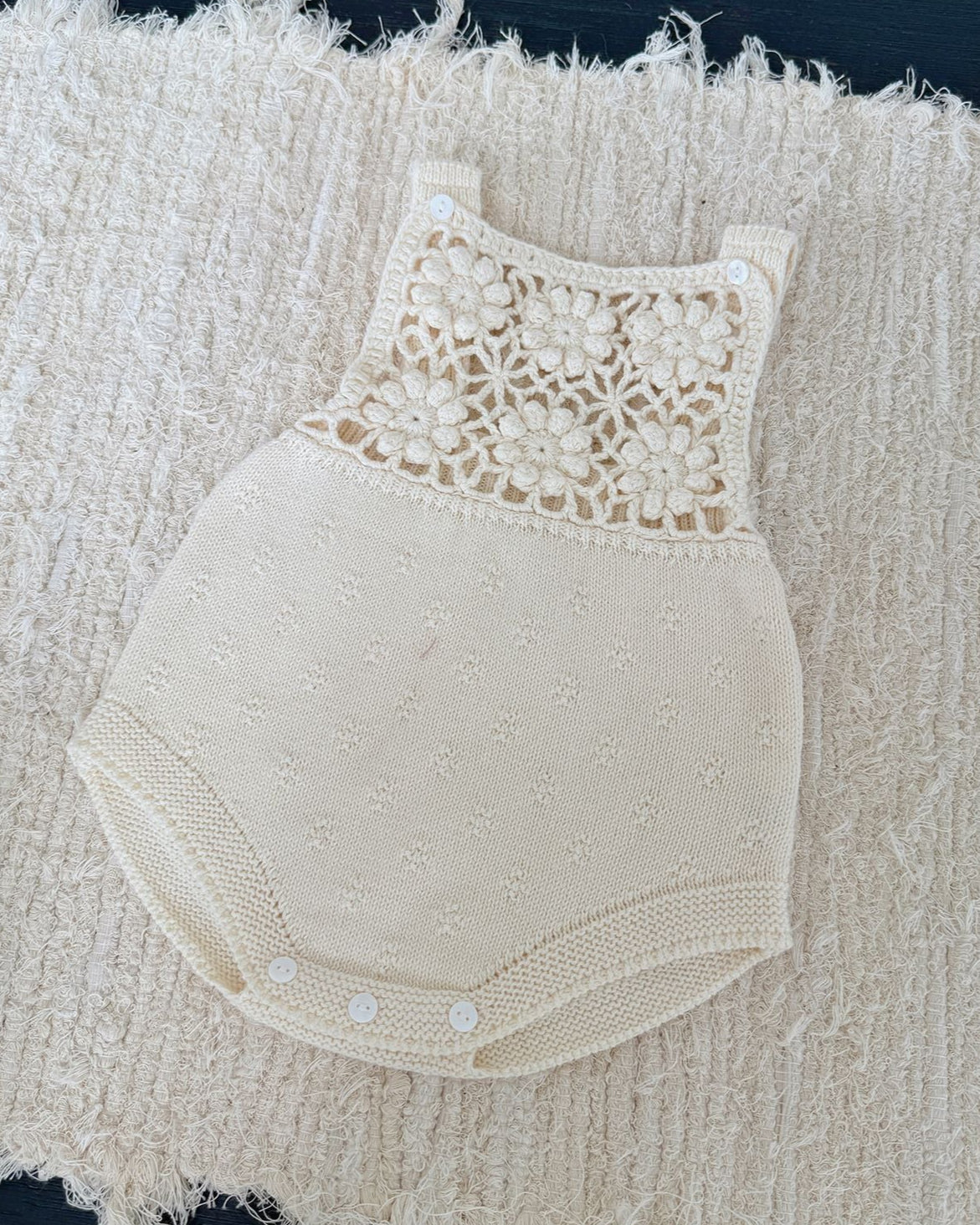 Knitted Crochet Floral Sleeveless Baby Girl Romper Hat