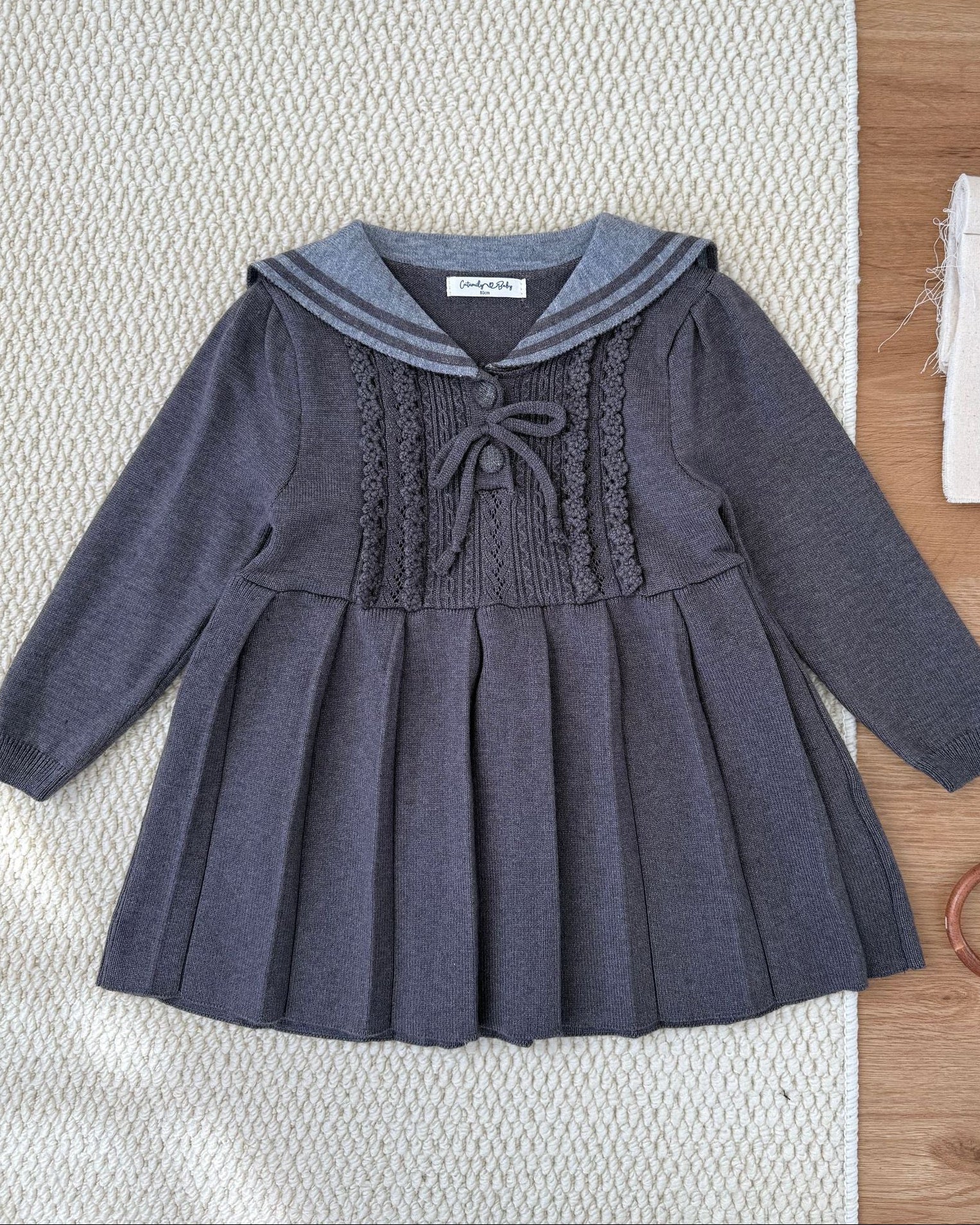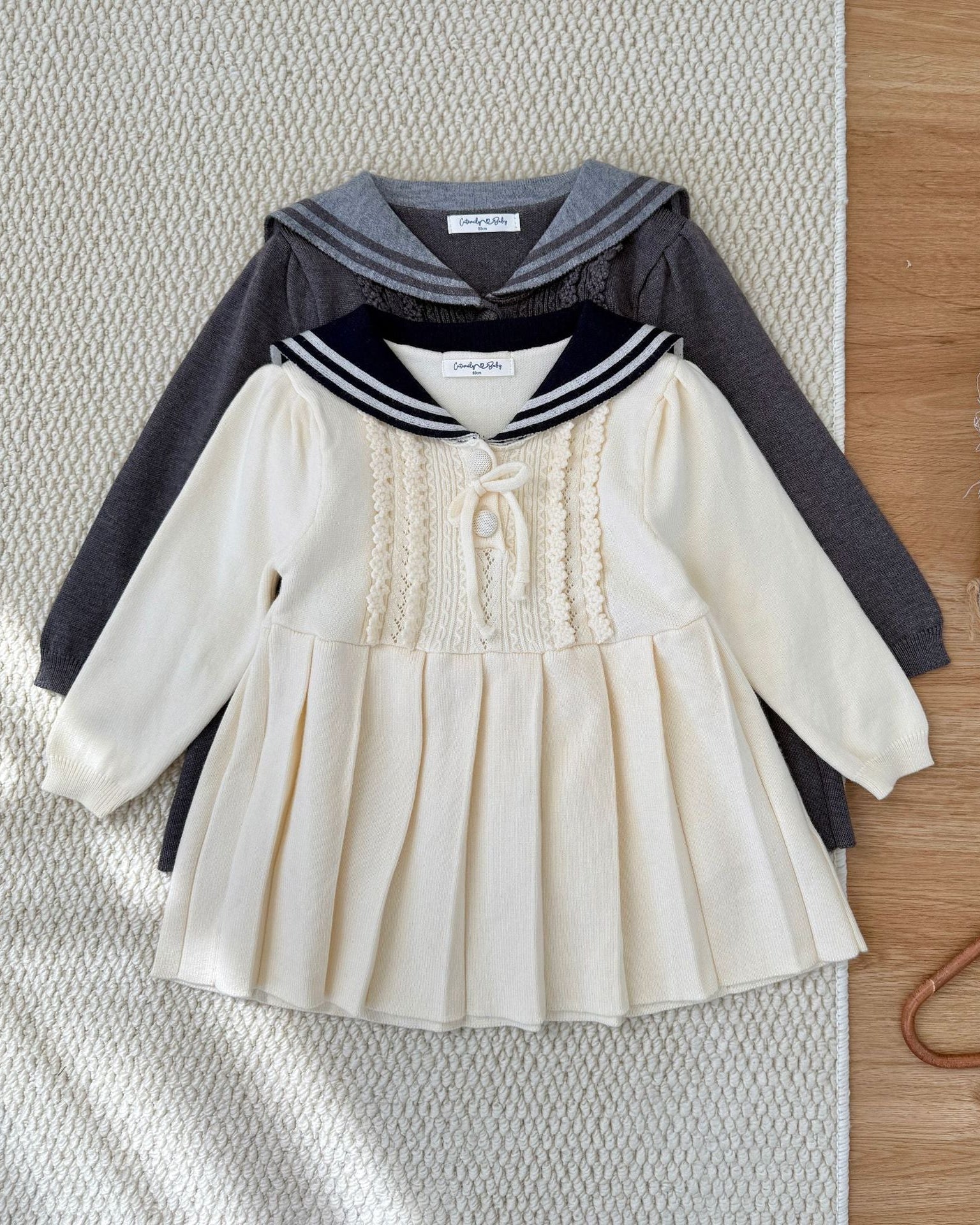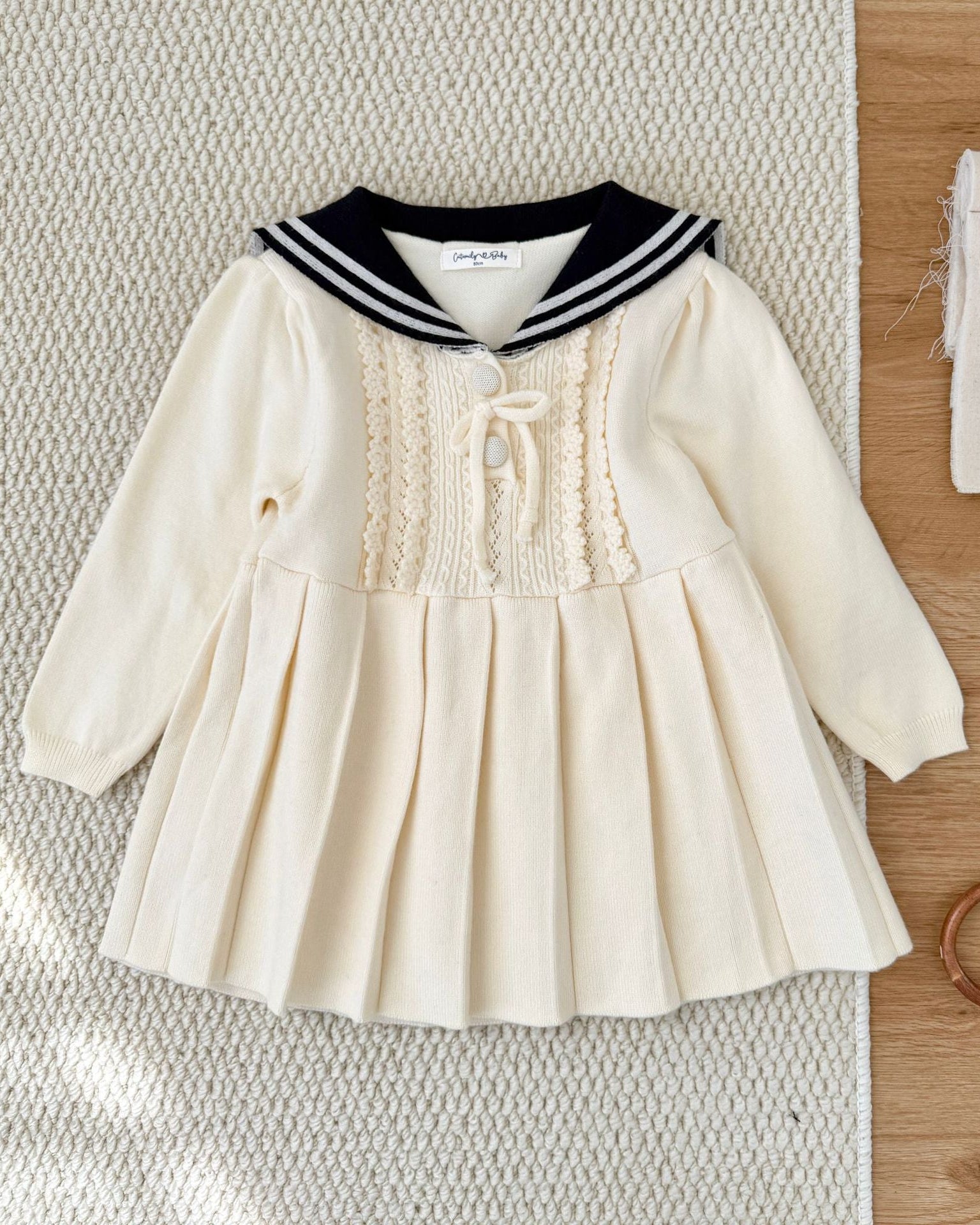Lapel Pleated Knitted Baby Girl Dress